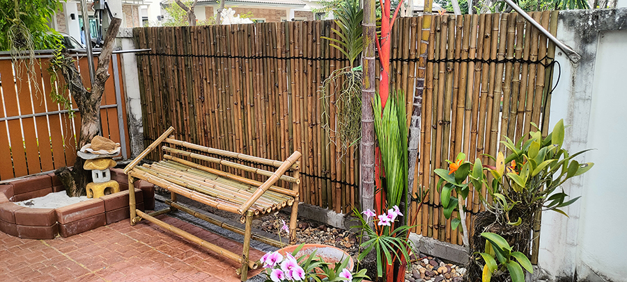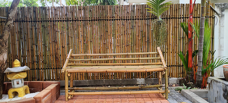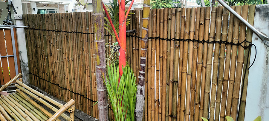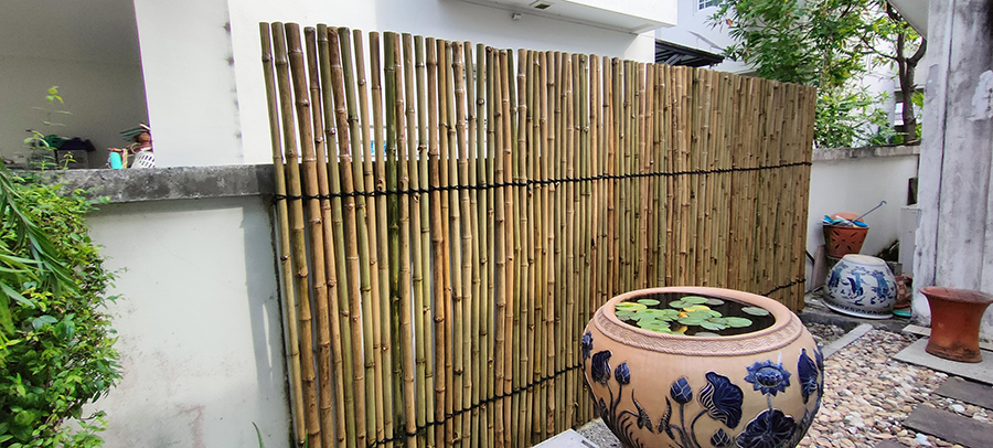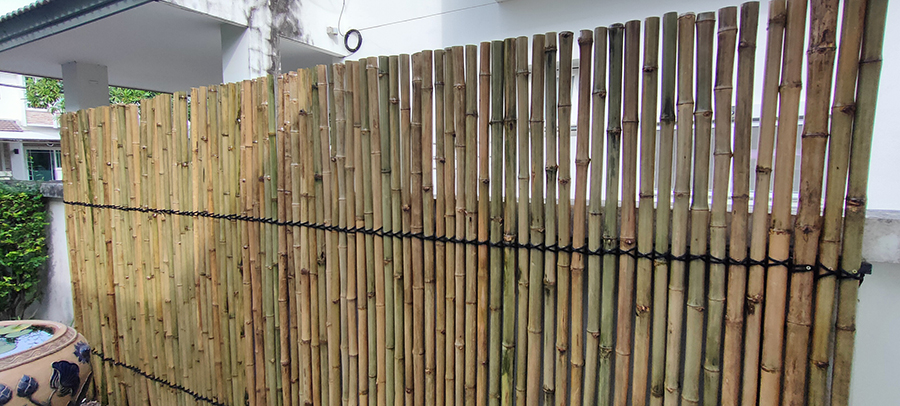 เป็นงานก่อสร้างรั้วไม้ไผ่ สำหรับตกแต่งบ้าน โดยใช้โครงคร่าวเหล็กยึดเข้ากับรั้วเดิม ติดระแนงรั้วไม้ไผ่ขนาดประมาณ 1.5 นิ้ว แล้วมัดเชือกตกแต่ง สามารถช่วยบังตา และมีความสวยงาม โดดเด่น อายุการใช้งานประมาณ 5 ปี ขึ้นอยู่กับสภาพแสงแดดและการดูแลรักษา