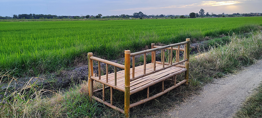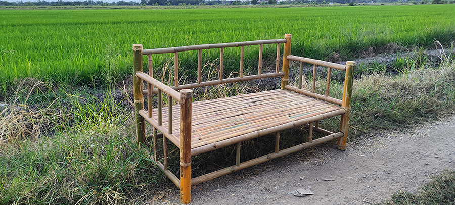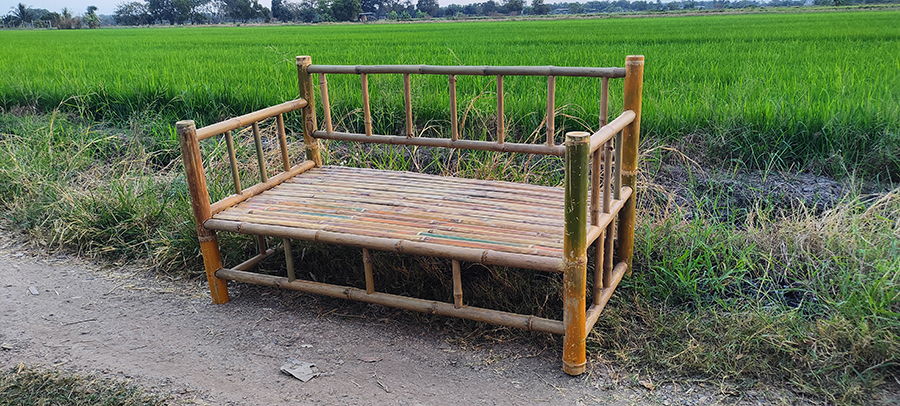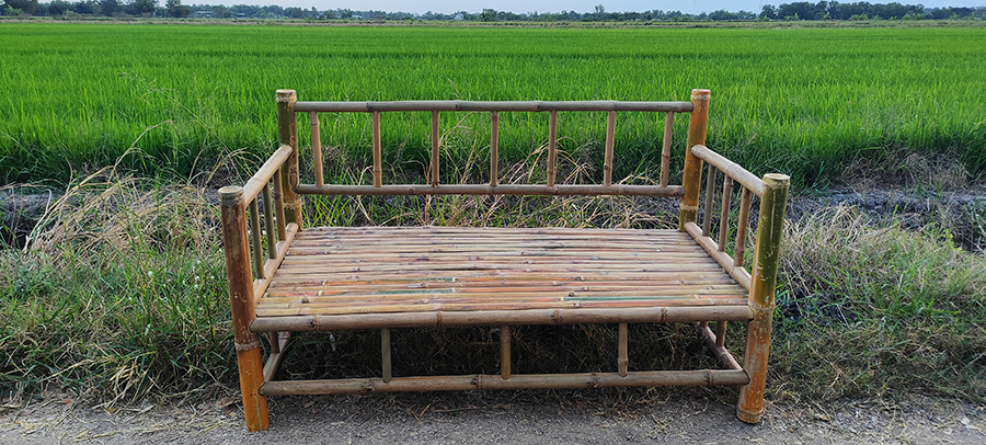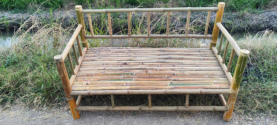เป็นงานสั่งทำโซฟาไม้ไผ่ตามแบบโดยใช้ไม้ไผ่ทั้งหมด ประกอบตามรูปแบบที่ต้องการ ปูพื้นนั่งด้วยไม้ไผ่ผ่าซีก เคลือบเงา และลงน้ำยากันมอด สวยงาม สร้างความโดดเด่นน่าสนใจ